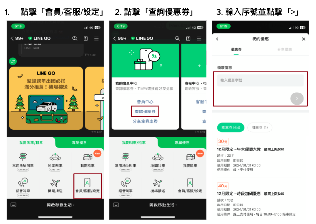 (2) 即時接機 $150 x 1張:限定『桃園機場-24H即時接機』,其他行程恕不適用,其他使用規範境請參考官網說明。